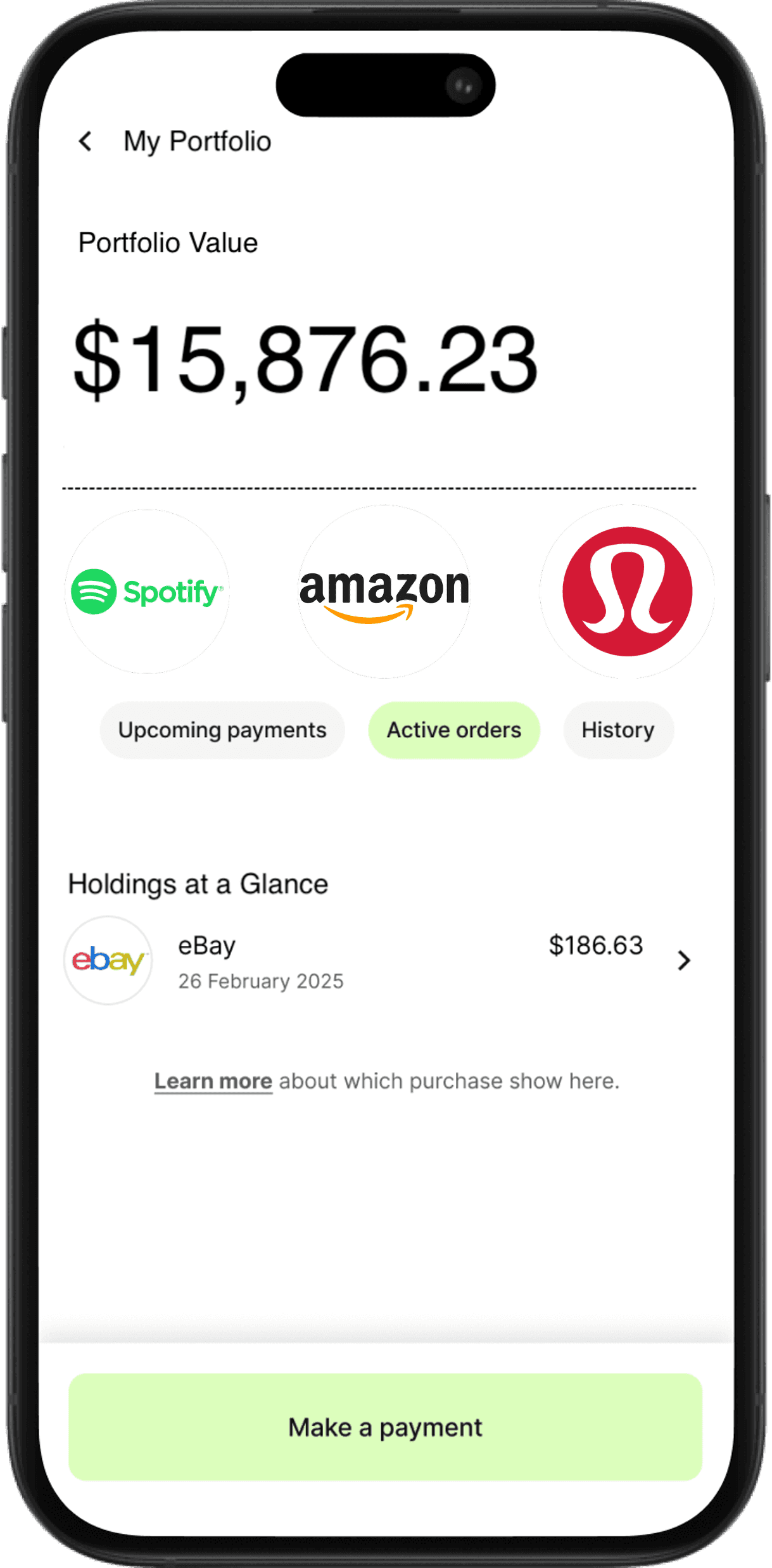Every purchase adds to your portfolio. Log in anytime to see the brands you own, your total equity value, and how your spending is building real wealth.
